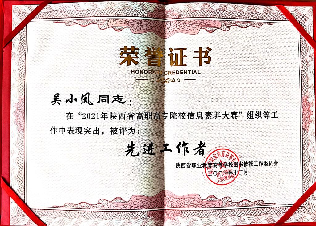 12月18日,2021年省高职高专院校图书馆工作年会暨信息素养大赛总结表彰会宣布了2021年陕西高职高专院校信息素养大赛获奖名单。学校荣获特等奖1项,一等奖2项,二等奖1项,优秀指导教师4名,先进工作者1名,学校荣获“优秀组织奖”。