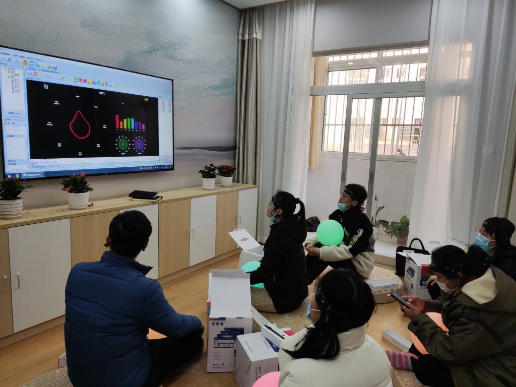 培训交流过程中,大家一同参观体验了三校区心理功能室,学习功能室设备治疗理念和操作方法,对学生心理咨询服务工作进行交流学习。