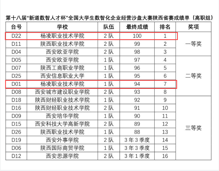 6月17日,第十八届“新道数智人才杯”全国大学生数智化企业经营沙盘大赛陕西省赛落下帷幕。本次采用线上比赛形式,来自省内13所高职院校26支代表队104人参赛。经过激烈角逐,我校经济与贸易学院工商企业管理专业学生廖明明、现代物流管理专业学生常雨卓和大数据与会计专业学生杨西宁、党依蓉荣获一等奖第一名,工商企业管理专业学生王家乐、刘虹池和商务数据分析专业学生冯迎亮、大数据与会计专业学生鲁文杰荣获二等奖。