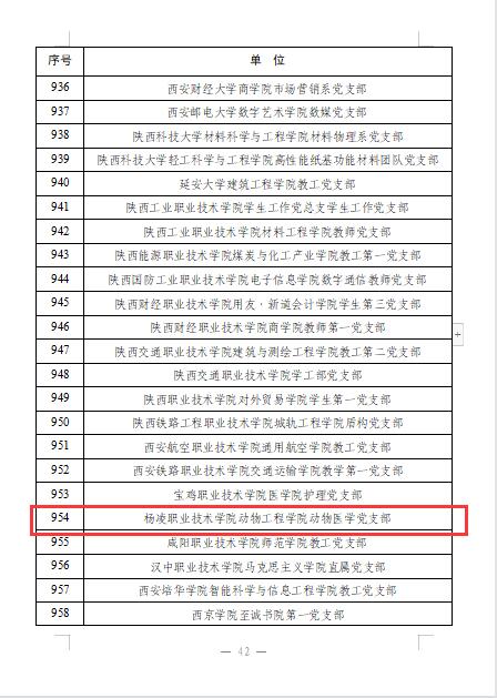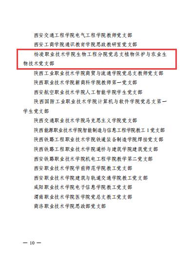 近期,教育部思想政治工作司、省委教育工委先后公布第三批新时代高校党建示范创建和质量创优工作名单。我校动物工程学院党总支动物医学党支部入选全国党建工作样板支部创建单位。学校党委、生态环境工程学院党总支、生物工程学院党总支植物保护与农业生物技术党支部分别入选陕西省党建示范高校党委、党建标杆院系、党建样板支部创建单位。