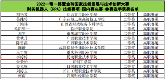 7月30日,由金砖国家工商理事会与教育部中外人文交流中心共同主办、中国商业会计学会职业教育分会等单位承办的2022“一带一路”暨金砖国家技能发展与技术创新大赛财务机器人(RPA)技能赛项国内赛决赛落幕,我校经济与贸易学院大数据与会计专业学生李婷婷代表学校参赛并荣获高职赛道二等奖,学校获优秀组织奖。
