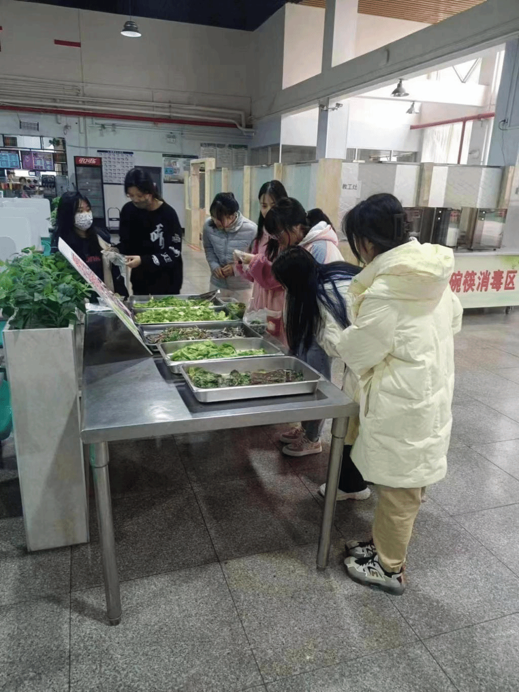 据了解,本次提供的蔬菜主要包括圆生菜、奶油生菜、大青菜香菜等三校区餐厅的蔬菜供应点师生们有序排队自行取菜,现场笑声连连。