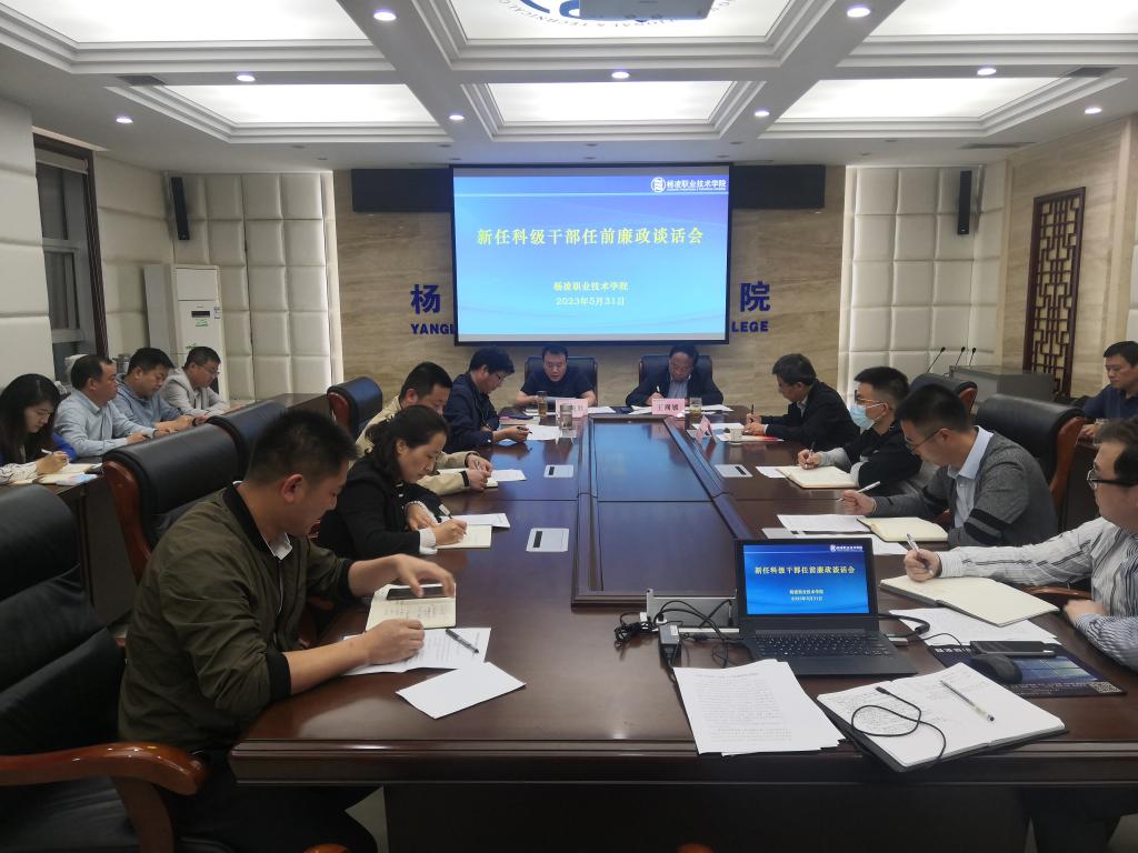 5月31日下午,学校召开新任科级干部集体谈话会。党委书记王周锁出席会议并讲话,党委副书记、纪委书记王勇胜作任前廉政谈话。党委委员、组织部部长田争运,纪委副书记晁团光,以及近期新提任23位科级干部参加会议。