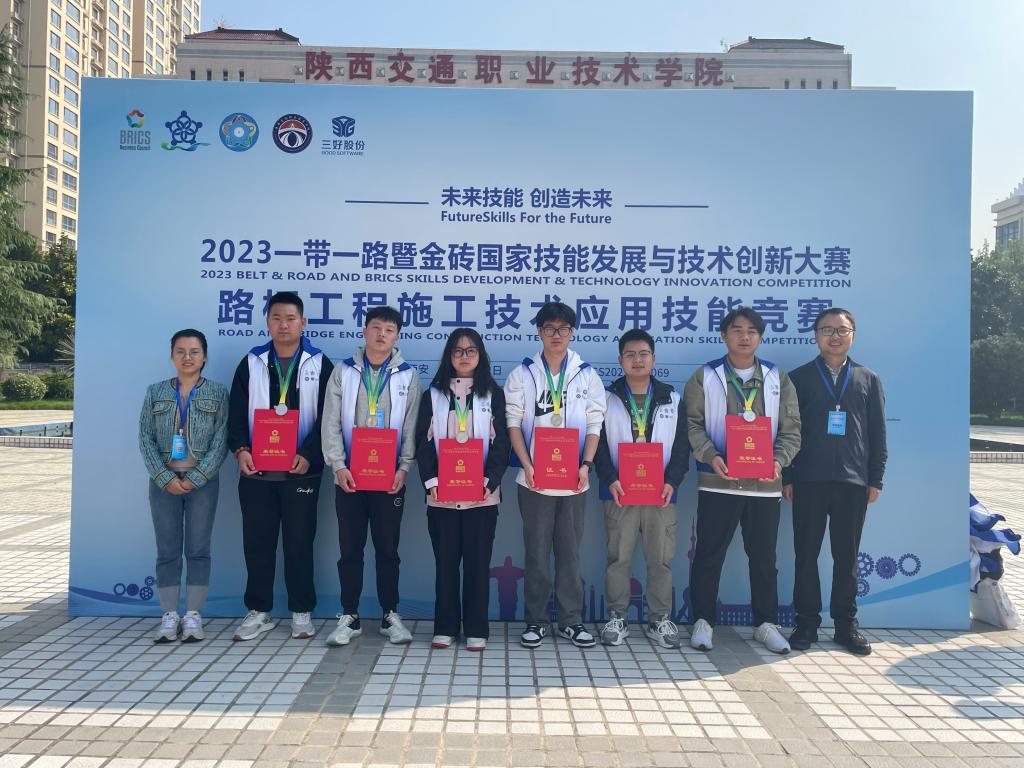 10月21日至22日,2023一带一路暨金砖国家技能发展与技术创新大赛-路桥工程施工技术应用技能竞赛决赛在西安举办,共有来自全国28个省份地区的179所院校323支队伍1500多名师生参赛。我校交通与测绘工程学院组成的两支代表队均获团体二等奖,学校获优秀组织奖,3名教师获得优秀指导教师。