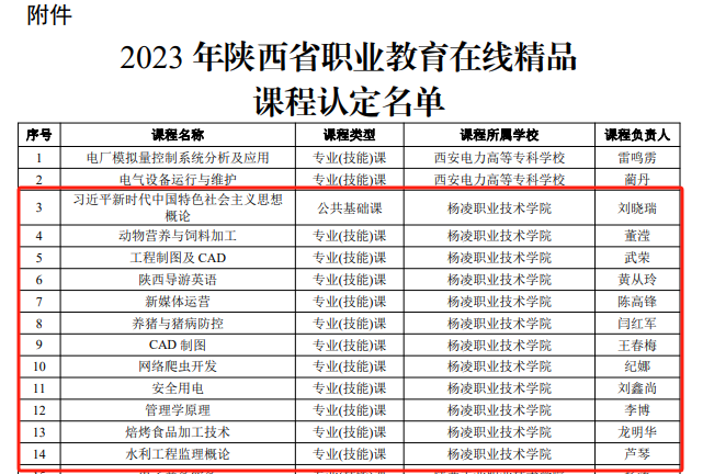 杨凌职院12门课程被认定为陕西省职业教育在线精品课程