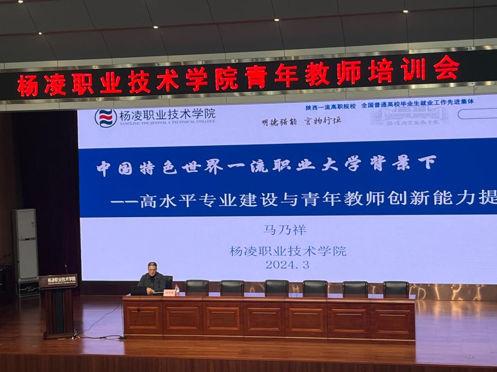 马乃祥结合自身教学经验,以“高水平专业建设与青年教师创新能力提升”为题,为青年教师阐述了职业教育的内涵和价值,解读了“双师型”教师的内涵、教学工作会议精神、专业建设与课程体系等内容,就如何提升教师教学与教改能力、参与团队建设等方面提出建议和指导。他鼓励青年教师积极融入团队,掌握核心技术,促进产业升级,不断提升社会服务能力,为学校的发展贡献力量。