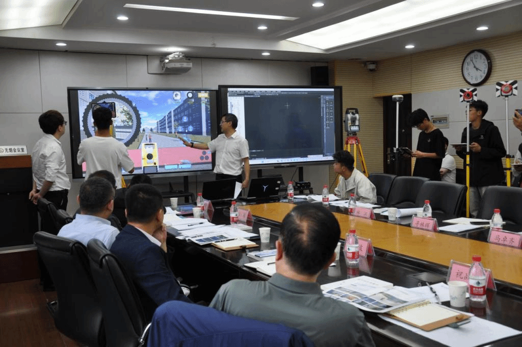 会后,我校作为南方测绘元宇宙高校陕西行第6站,郭宝宇为与会师生现场展示了元宇宙实训室,开展了技能培训和技能大赛教学指导,完成了虚拟测量任务,得到与会专家的一致认可。