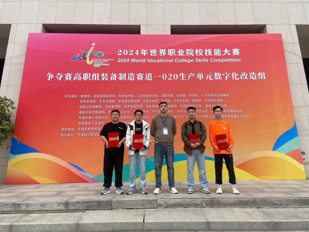 10月26日至31日,2024年世界职业院校技能大赛总决赛争夺赛装备制造赛道——生产单元数字化改造组在天津轻工职业技术学院成功举办,共有来自全国省、自治区、直辖市的60支队伍参赛。我校机电工程学院由教师李培东、张争刚指导,胡海斌、郑思远、郭济时、郭佳宾组成的学生团队,凭借扎实的专业技能,荣获银奖。