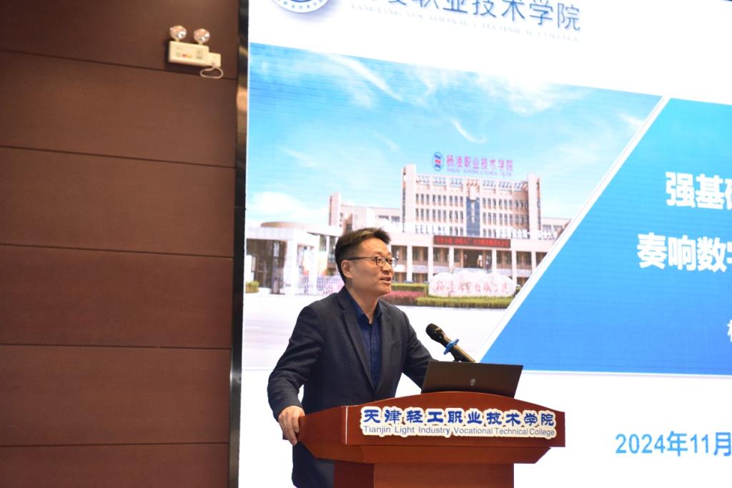 11月19日,由教育部职业院校信息化教学指导委员会、清华大学教育研究院等单位联合主办的职业教育数字化发展研讨会暨职业教育数字化转型专项研究启动会在天津轻工职业技术学院召开。我校作为两所职业院校代表之一,在会上进行案例分享与交流。