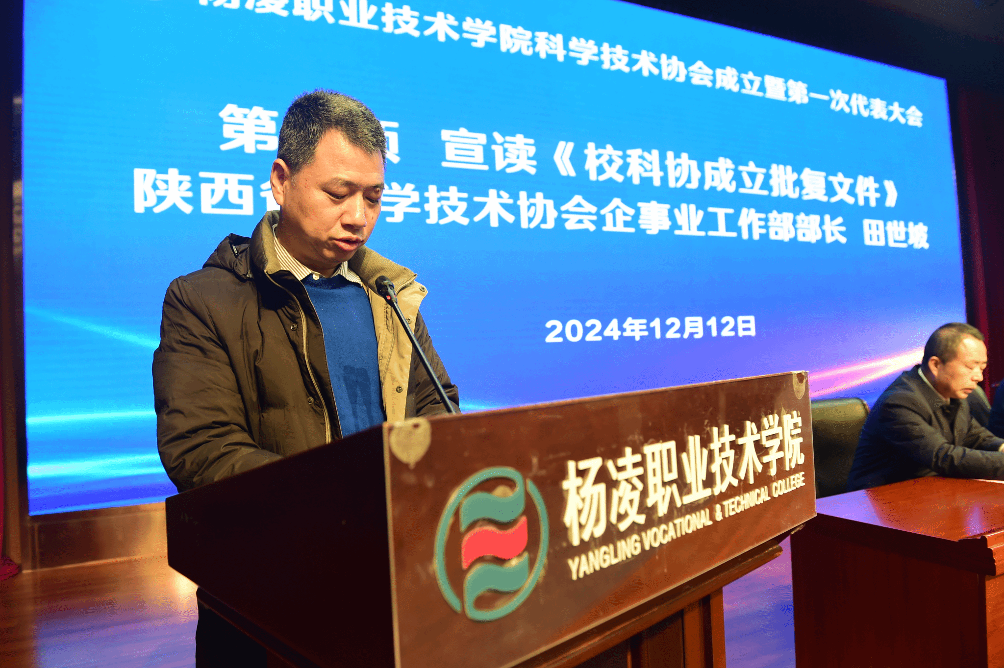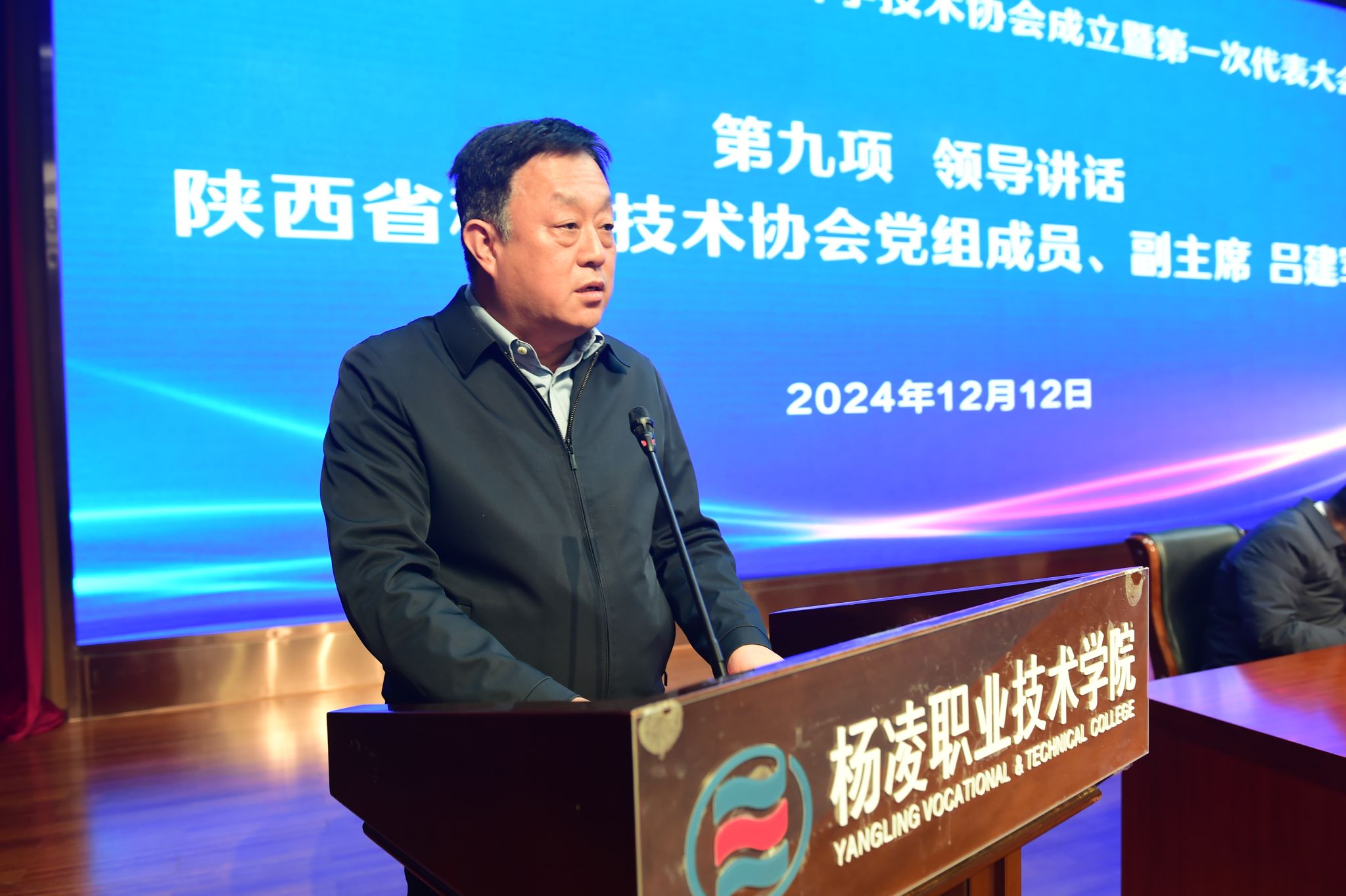 吕建军代表省科协对学校科学技术协会的成立表示祝贺。他指出,杨凌职业技术学院在长期办学实践中,为陕西乃至全国农林水行业发展做出了重大贡献。学校科学技术协会的成立,不仅体现了学校对科技、科协工作的高度重视,也搭建了省科协和学校进一步密切联系、深化合作的重要平台。希望学校科学技术协会成立后,要强化政治引领主责意识,更广泛地把广大科技工作者团结在党的周围;要准确把握新时代科协组织的定位,聚焦科协主责主业,打造富有特色的科协工作品牌;要牢固树立服务科技工作者的生命线意识,建设有温度的可信赖的科技工作者之家。