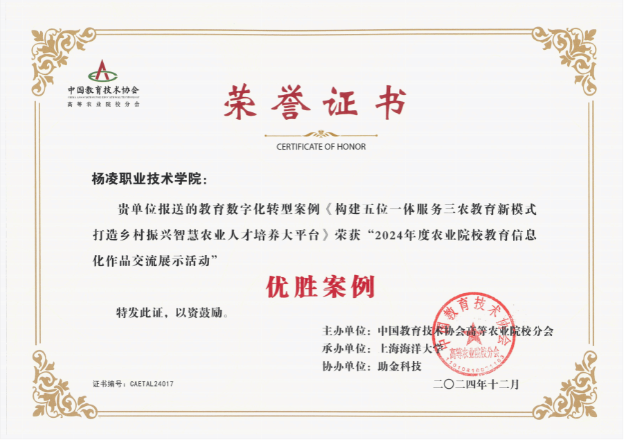 近日,中国教育技术协会高等农业院校分会开展全国涉农高校教育信息化作品交流展示活动,我校提交的《构建五位一体服务三农教育新模式,打造乡村振兴农业人才培养大平台》案例被评选为全国涉农高校教育数字化转型“优胜案例”。
