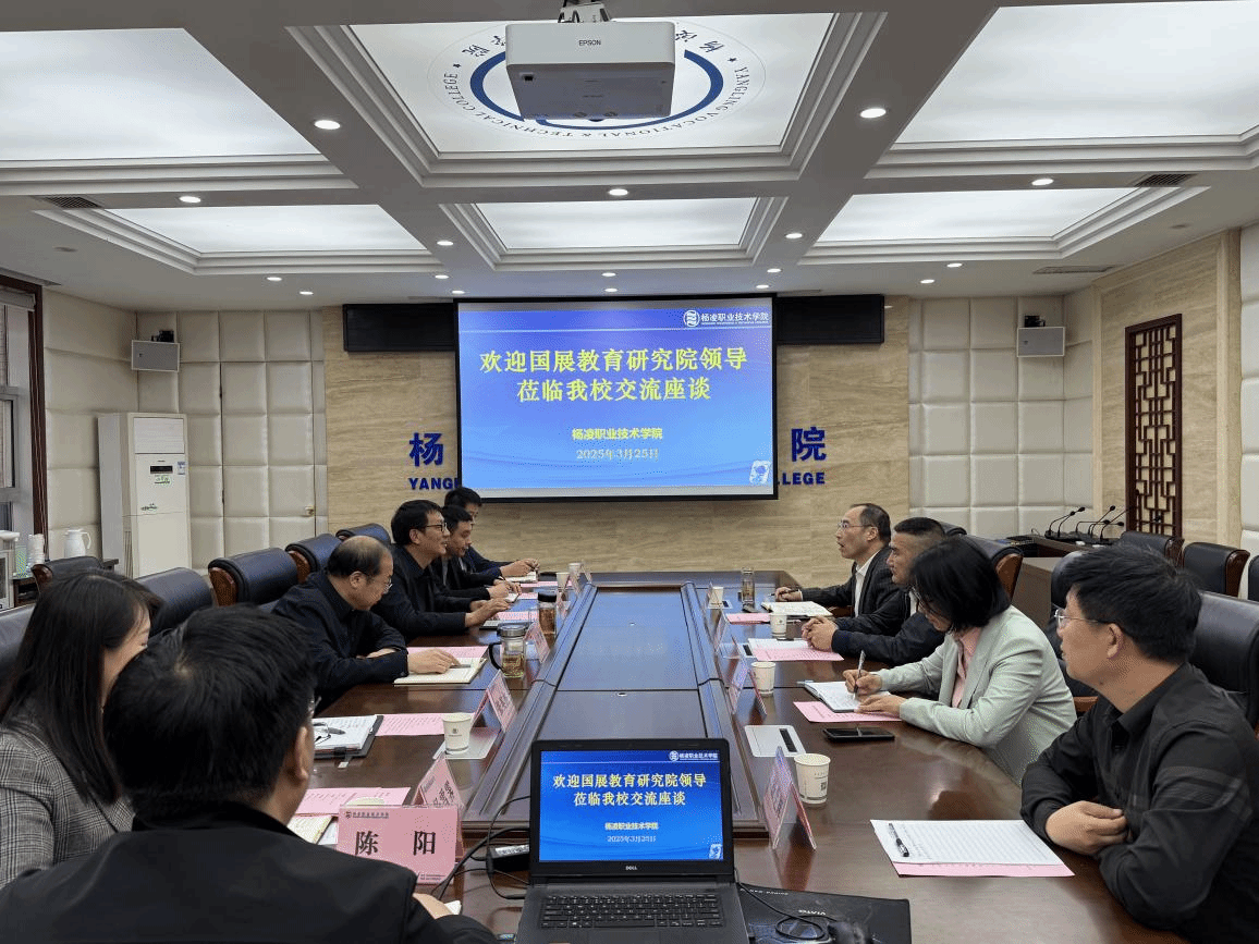 3月25日,北京国展兴泰教育科技研究院党委书记强三平、副院长李娟,北京国展兴泰教育科技研究院研究员、江苏城乡建设职业学院副院长陈寿根等一行4人来校考察交流。校长仲伟周、副校长蒋平江陪同考察并座谈。人事教师处、产教融合处、国际合作交流处负责人,以及教务处、发展规划处相关教师参加。