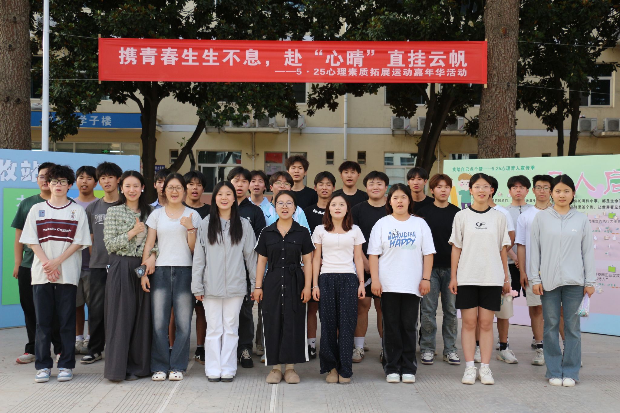 为深入普及心理健康知识、提升师生心理保健意识,全力营造阳光向上的校园心理生态。5月22日下午,我校“携青春生生不息 赴‘心晴’直挂云帆”5·25心理素质拓展运动嘉年华活动在三校区同步启动。本次活动由校大学生心理健康教育与咨询中心主办,水利工程学院、信息工程学院、生物工程学院、旅游与管理学院承办。副校长张朝晖出席活动。学工部负责人,各二级学院负责人,学工办主任,辅导员老师及三校区700余名师生共同参与活动。