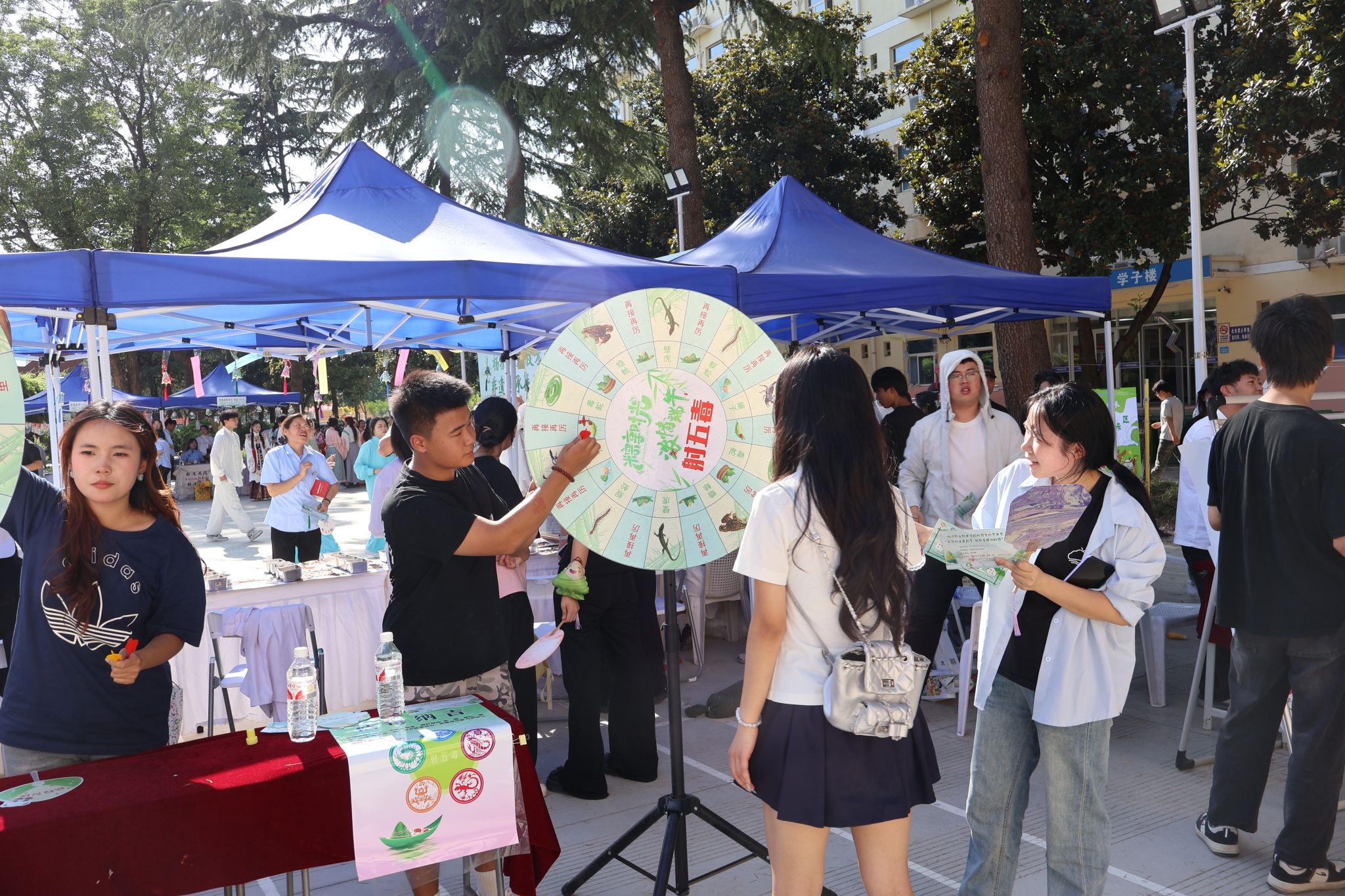 “拾艺端午”非遗技艺体验区亮点纷呈。药物与化工学院“药香廿四候”主题展区,巧妙融合二十四节气与传统中草药智慧,中药制药专业学生带领师生制作含有艾草、陈皮、丁香等中药材的特色香囊。水利工程学院、交通与测绘工程学院现场展示秦砖汉瓦拓印技艺,动物工程学院精心设置非遗缠花工作坊,建筑工程学院开展艾草养生枕制作教学,机电工程学院、旅游与管理学院设置漆扇绘制、帆布包拓印等创意项目。参与者纷纷感慨“像开启了一场穿越千年的文化盲盒之旅”。