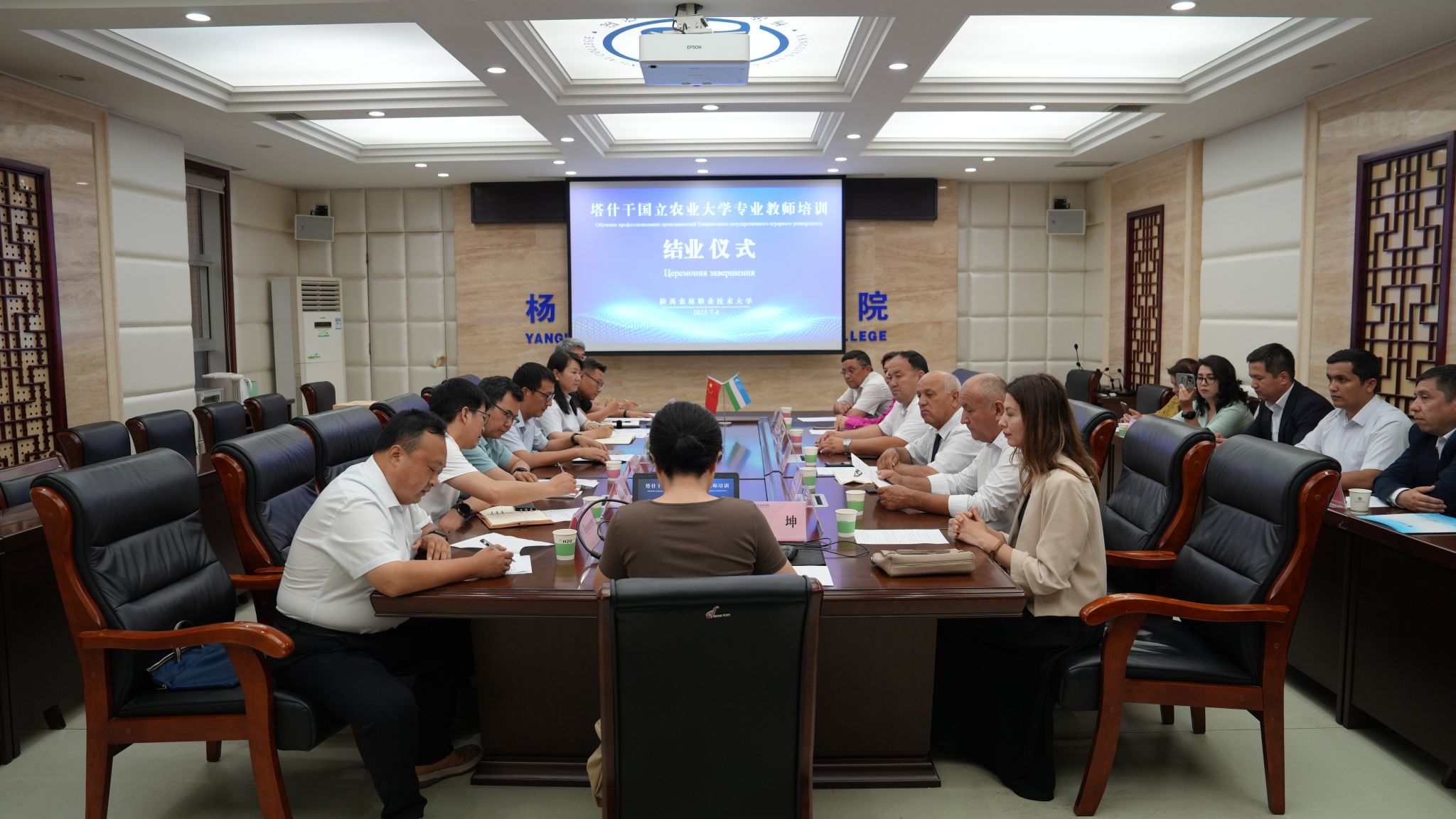 7月4日,乌兹别克斯坦塔什干国立农业大学14名教师代表在我校圆满完成现代农业技术培训。副校长蒋平江为参训教师颁发结业证书。