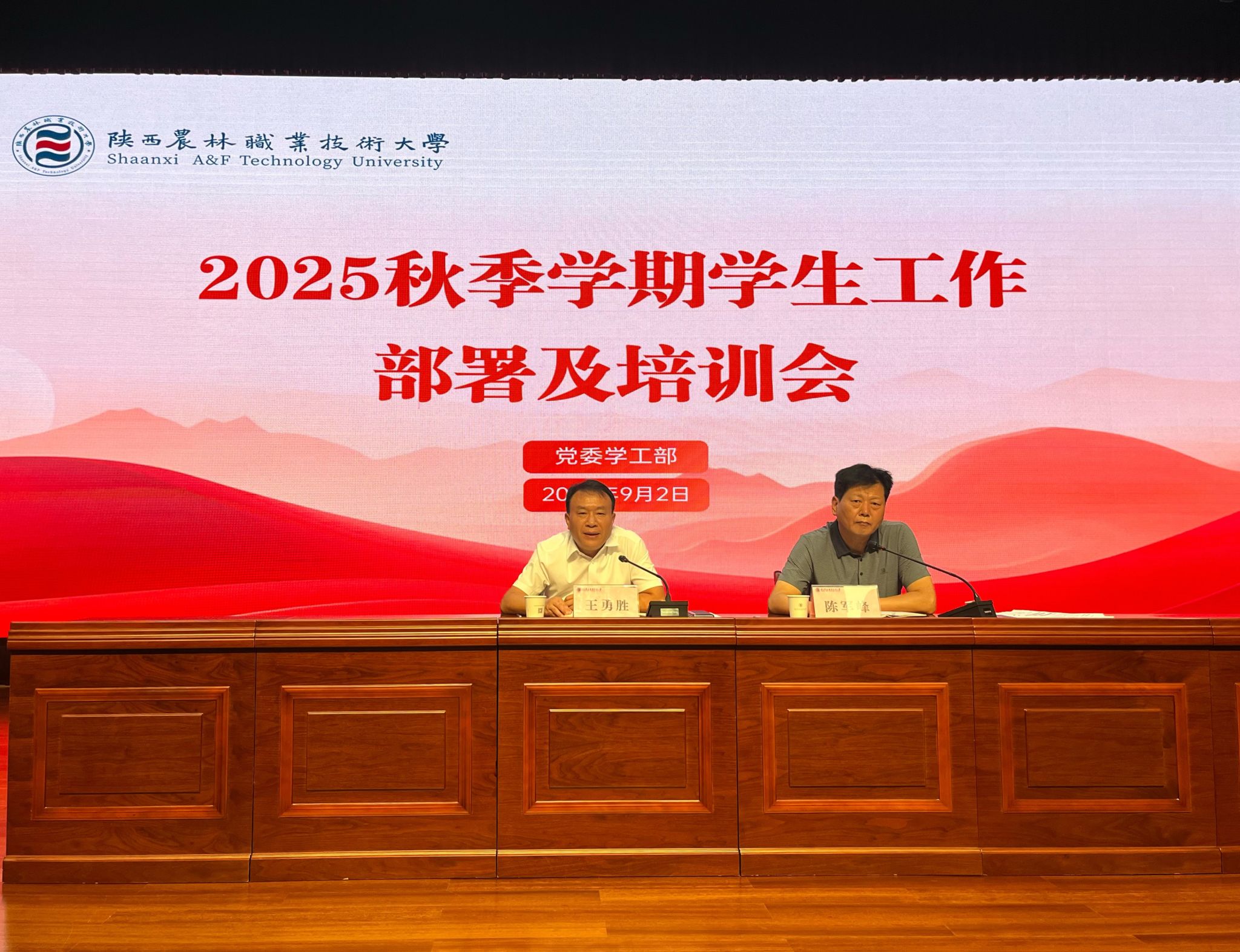 9月2日下午,学校召开2025年秋季学期学生工作部署及培训会。党委副书记、纪委书记王勇胜出席并讲话,学工部、各学院党总支书记,学工办主任,全体辅导员,学生处全体人员共计120余人参加。