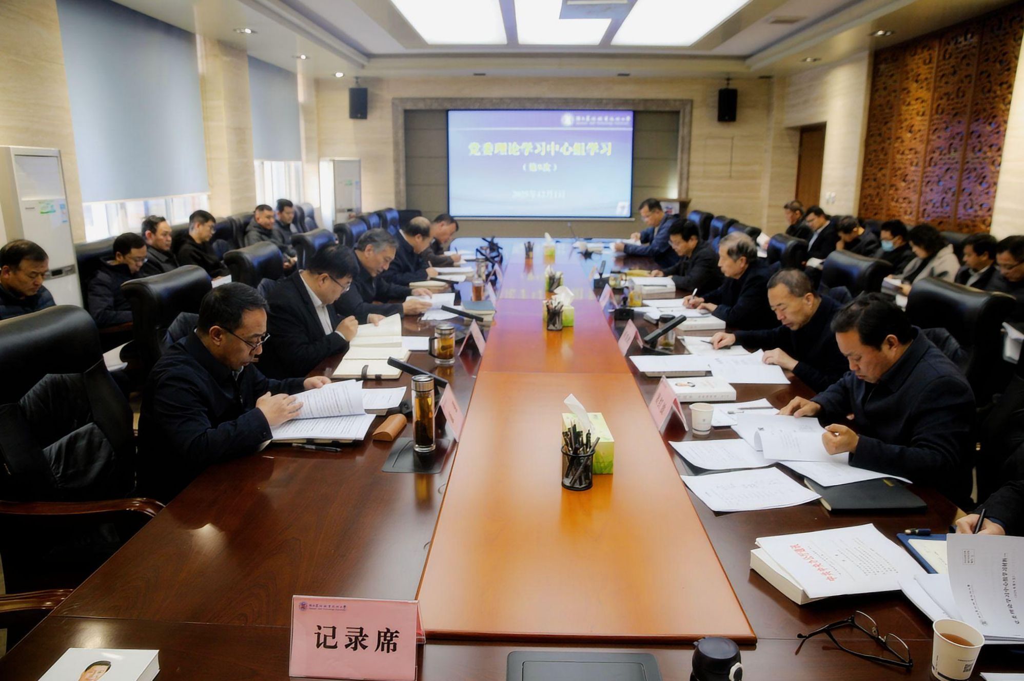 12月1日下午,党委书记韩明军主持召开2025年第9次党委理论学习中心组学习会。党委理论学习中心组成员参加了会议。