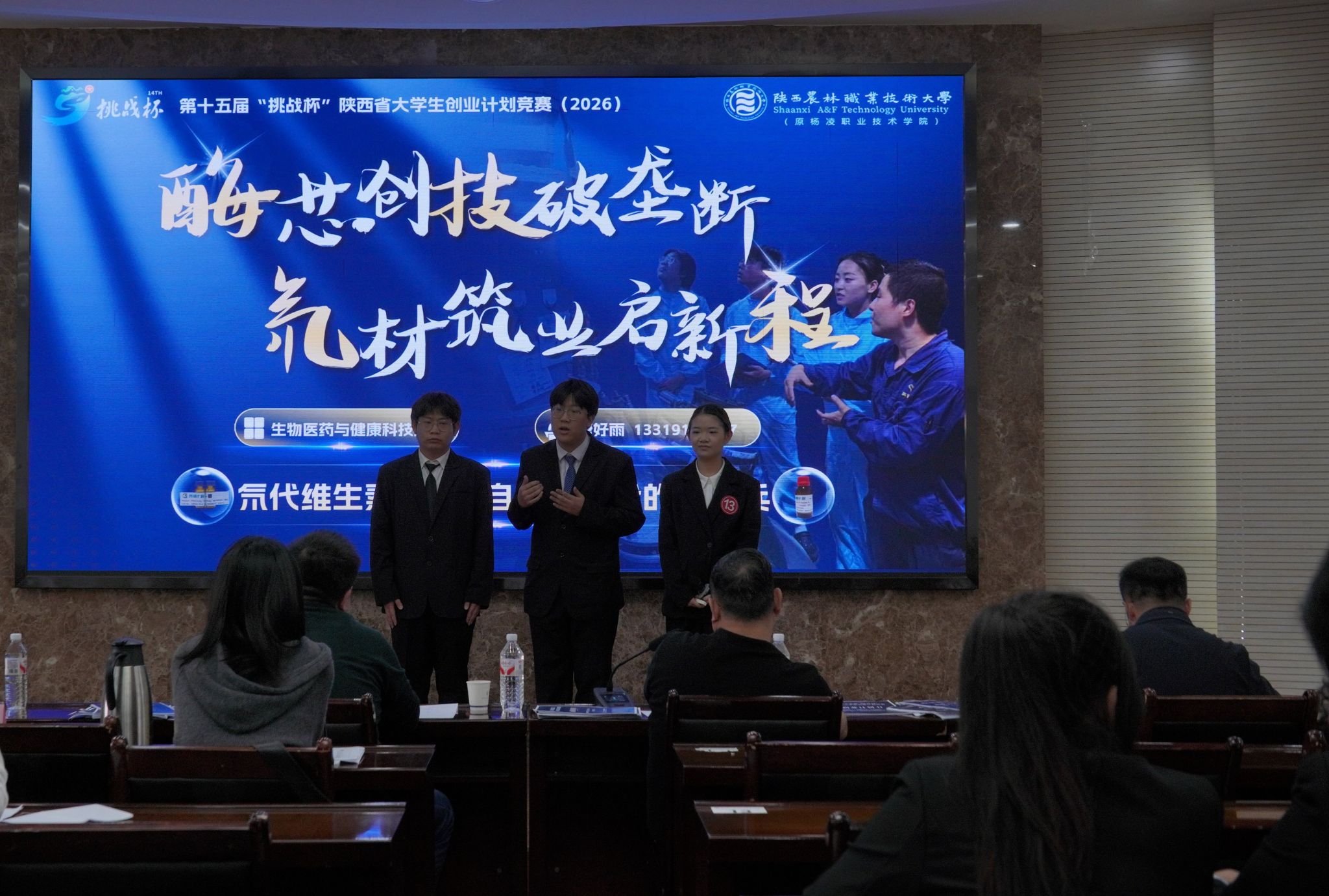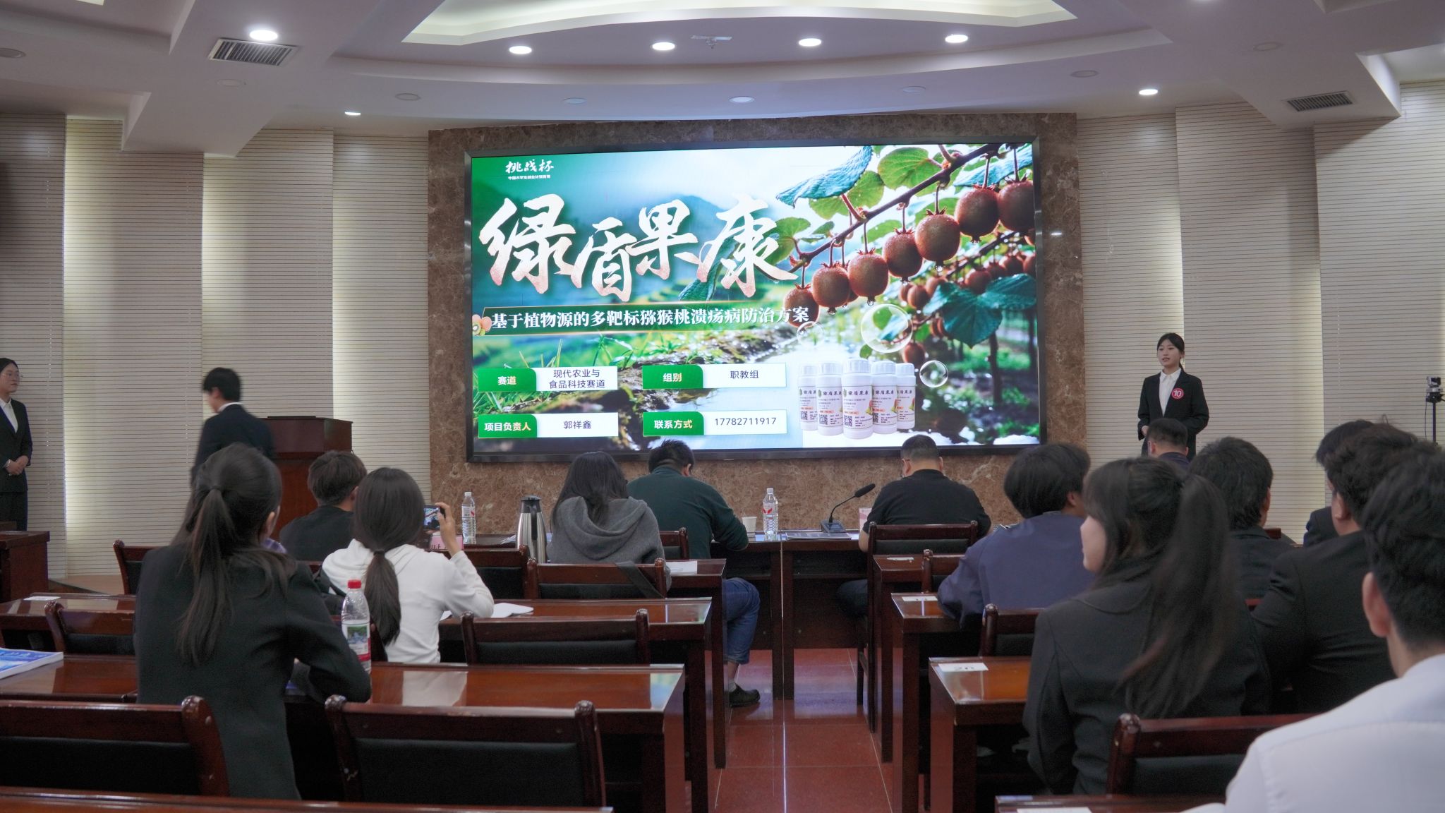 答辩现场,各团队通过抽签确定路演顺序,结合PPT演示、实物展示等形式,围绕项目背景、概述、优势、应用场景、社会价值、商业模式、团队架构、未来展望八大维度展开陈述,充分展现了扎实的调研基础、清晰的研发逻辑与突出的创新价值。本次赛事邀请3位具备丰富创新创业指导经验的专家担任评委,针对各项目技术壁垒、市场定位、运营逻辑等核心维度逐一提问,出具了具象可落地的优化建议,助力团队打磨核心竞争力。