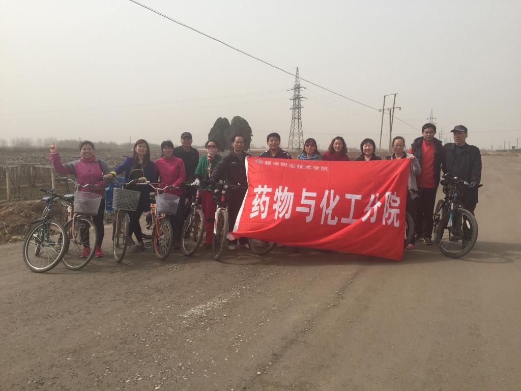 35日,睛空万里,春光明媚。上午9点,药物与化工分院参加自行车骑行活动的分院教职工个个精神抖擞,准时来到我校西校区大门口,整装待发。在组织人员说明活动目的、骑行路线、注意事项和有关要求后,骑行活动正式开始。骑行路线为:西校区大门→南校区南门→会展广场→东环路→河堤路→杨凌高铁站→杨凌大道→杨扶路→西北农林科技大学北校区→西校区大门。总里程约30KM。在骑行过程中,教职工们一会儿你追我赶、争先恐后、无人示弱,真是“骑”逢对手,一会儿结伴而行、交流技巧、相互帮助,更显“骑”乐融融。