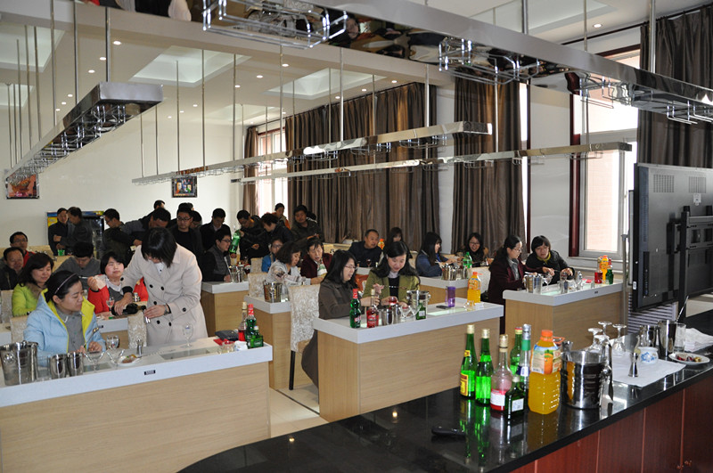 3 7 下午,交测分院全体教职工在分院领导的带领下,来到北校区旅游与管理分院实训室,学习茶艺与调酒。首先,大家观摩了前厅客房实训室、餐饮实训室、茶艺室、模拟酒吧、礼仪形体实训室、多功能语音室。接下来,由旅管分院高级茶艺师王晓娟老师教大家认识茶具、茶叶,并展示了优雅完美的茶艺表演。然后,旅管分院酒店管理专家赵辉带领大家来到模拟酒吧,学习调制鸡尾酒。大家各自拿起提前备好的酒器、酒水、饮料、冰块、柠檬汁、糖浆等原料,亲自动手调酒。那一杯杯红的、蓝的、白的、紫的、绿的、黄的,代表着热情、时尚、纯洁、高贵、活力、阳光……