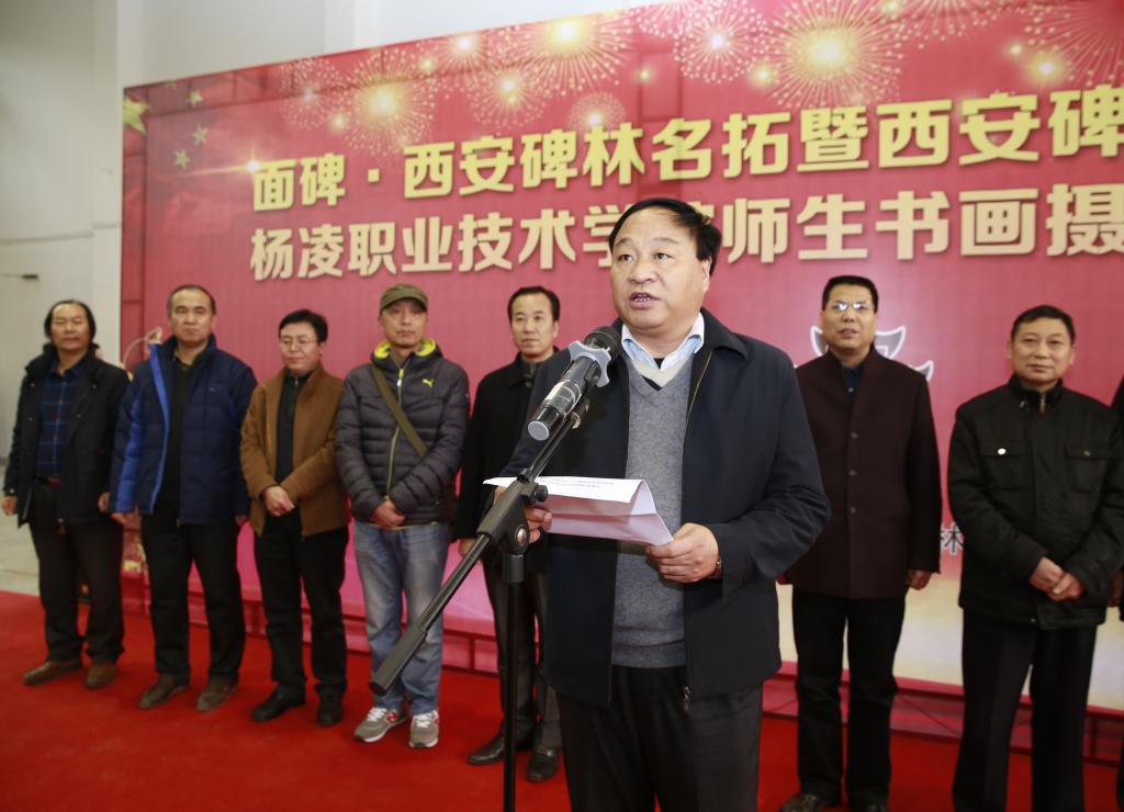 为贯彻落实习总书记在全国第十次文代会上的重要讲话精神,增强文化自信,进一步推动碑林传统文化走进高校活动,12月12日下午,由我院和西安碑林博物馆共同主办的《面碑•西安碑林名拓暨西安碑林书法家、杨凌职业技术学院师生书画摄影作品展》在我院一卡通中心开幕。