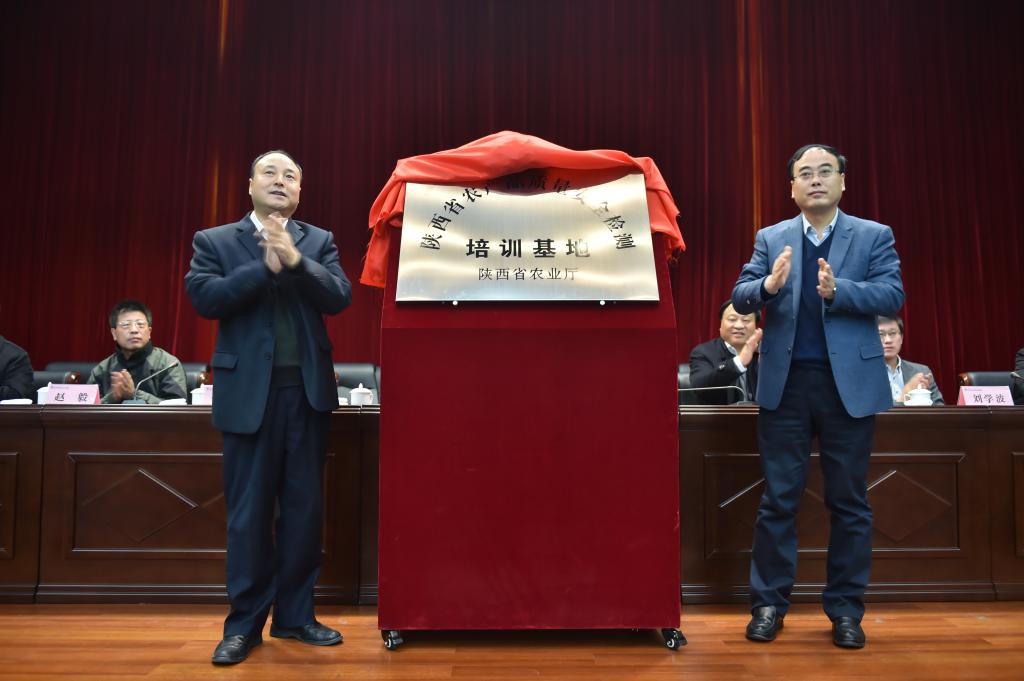 陕西省农业厅总经济师陈文、院党委书记赵曼为培训基地揭牌