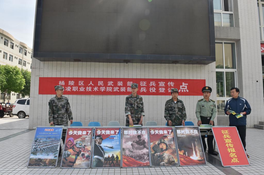 59日,我院人武部联合杨陵区人武部举办了国防教育和征兵宣传进校园活动。根据省军区、省教育厅要求,按照兵役法规定,目前,我院在校学生中年满18周岁男青年兵役登记率达到99.3%