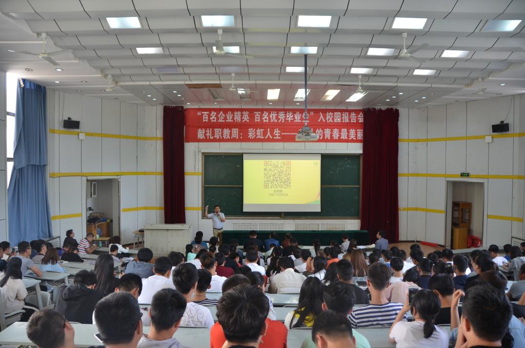 5月8日下午,西校区台阶教室座无虚席、掌声阵阵,动物工程分院“百名企业精英、百名优秀毕业生入校园”、“献礼职教周:彩虹人生——奋斗的青春最美丽”报告会在此隆重举行。西安你我它宠物有限公司经理王秋阳、西安零度人力资源管理有限公司总经理关敏应邀作报告,分院党总支书记、学工办主任、各教研室主任、部分专业课教师及学生代表350余人聆听了报告。