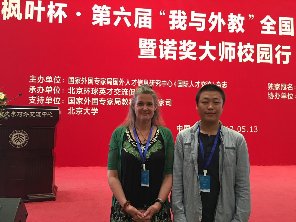 513日,“枫叶杯.第六届我与外教全国大赛颁奖典礼暨诺贝尔大学校园行”在北京大学举行,我院外国文教专家Katalin Burgess女士和建工国际班的柳泽林同学参加了颁奖典礼。国家外专局对我院外教和1名学生的“我眼中的中国”摄影作品,以及“我与外教”作品分别颁发了“优秀奖”。本次颁奖仪式和论坛由国家外专局主办,参加本届大会的学校有40多个,外专50多名,学生50 多名。