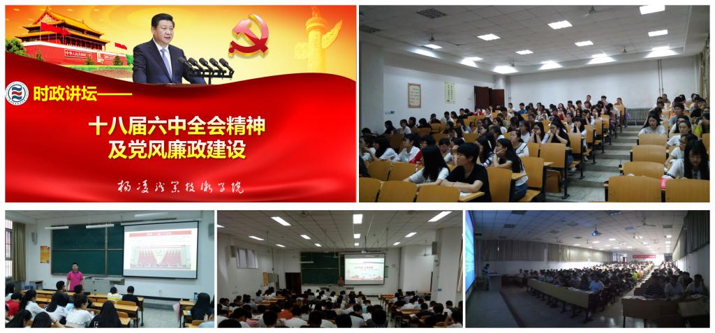 6月8日至9日,由思政部组织的以“十八届六中全会精神及党风廉政建设”为主题的时政讲坛于分别在全院三个校区同时宣讲。主讲教师紧紧围绕十八大以来党中央从严治党的新实践新成效,深刻阐释了十八届六中全会的重大意义,深入解读了十八届六中全会精神以及全会审议通过的《准则》和《条例》中的许多新观点新要求新举措,深度剖析了党风廉政建设和反腐败斗争的新认识新成效新任务。