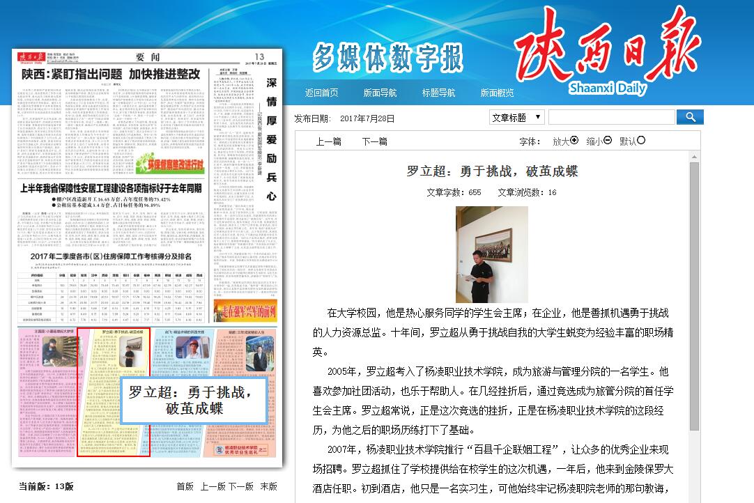 【陕西日报】罗立超:勇于挑战,破茧成蝶