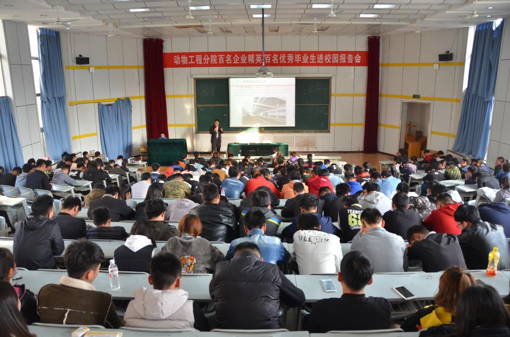 1113日下午,动物工程分院邀请陕西沁稼生态科技有限公司总经理任兴武、北京伟嘉集团陕西公司总经理司东平来校作报告。这是该分院启动百名企业精英、百名优秀毕业生进校园的“双百入校促学”活动以来的第8场报告,旨在用榜样的奋斗历程激励学生树立目标、刻苦学习、勇于成才。