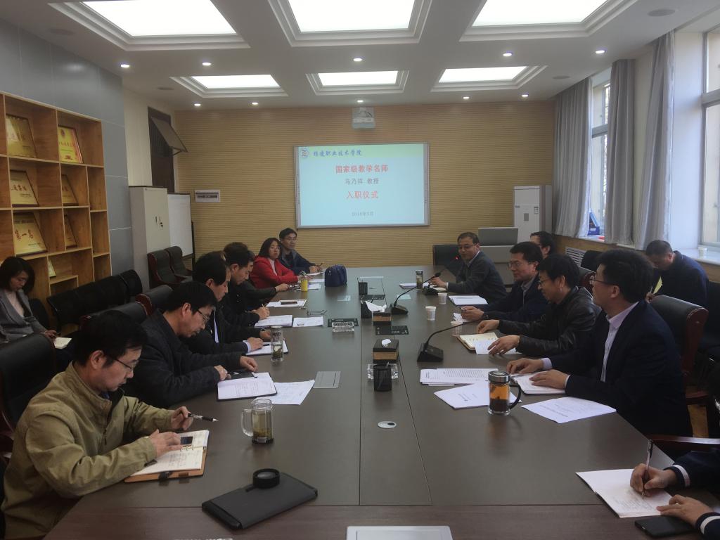 3月12日下午,动物工程分院召开全体教职工大会,举行国家级教学名师马乃祥教授入职仪式。党委副书记任得元出席会议,并向马乃祥教授颁发教授工作室牌匾。