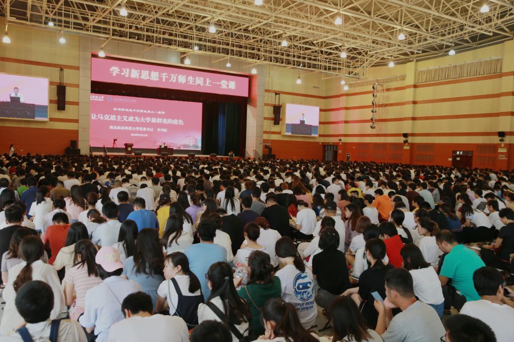 我院党委书记赵曼,党委副书记任得元,副院长王晓地、张迪,处科级干部,思政课部教师,全体辅导员,各分院教师、学生代表千余人,与西北农林科技大学千名师生共同聆听了报告会。