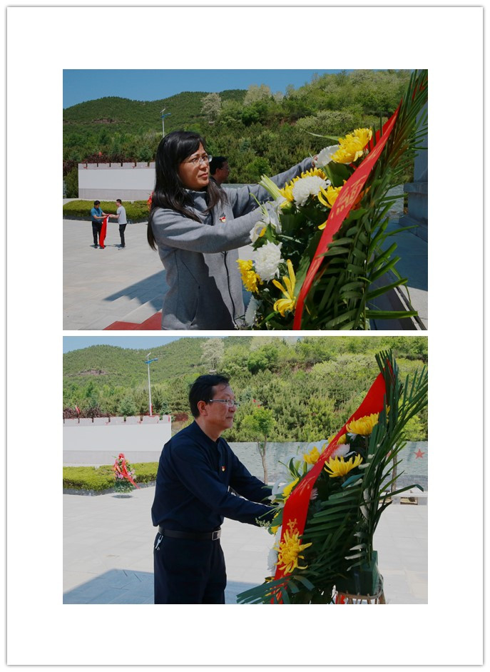 党委书记陈宁、副书记任得元代表学院向革命先烈敬献花篮