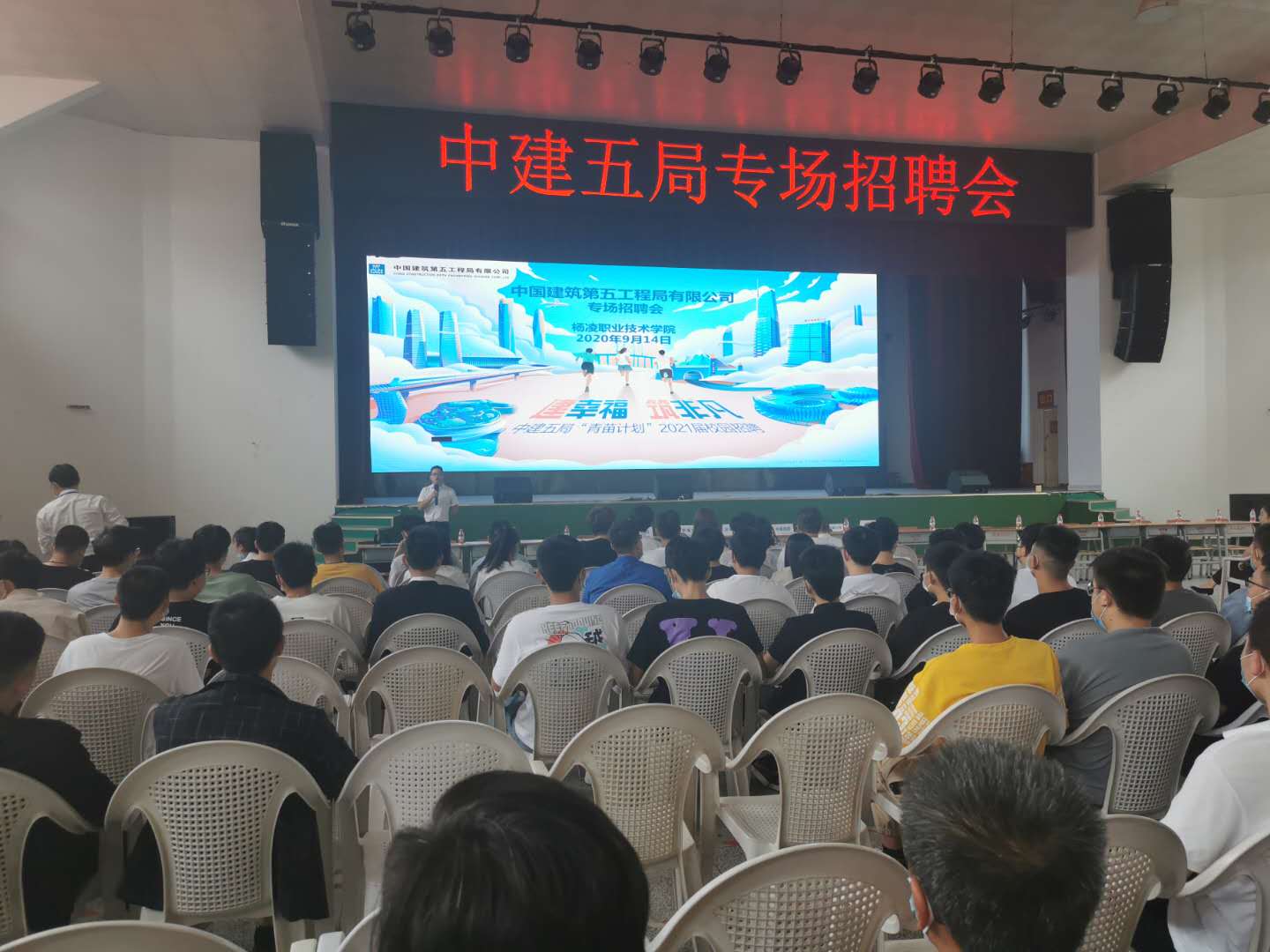 9月14日下午,学院在南校区一卡通中心举办中建五局专场招聘会,央企中建五局三公司、华南公司、总承包公司、安徽公司、河南公司及中建隧道建设有限公司等六大单位同时现场招聘,学院800多名2021届毕业生参加了此次招聘会。