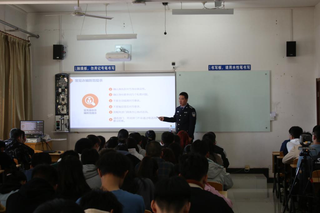 为进一步增强师生防诈骗意识,提高防诈骗能力,我校保卫处联合辖区派出所于10月14日、16日分别为生物工程分院、信息工程分院新生举办《预防电信诈骗,共建和谐校园》报告会,邀请了杨陵派出所民警张琦、李台派出所民警张大伟,与同学们分享交流防诈骗经验和方法。