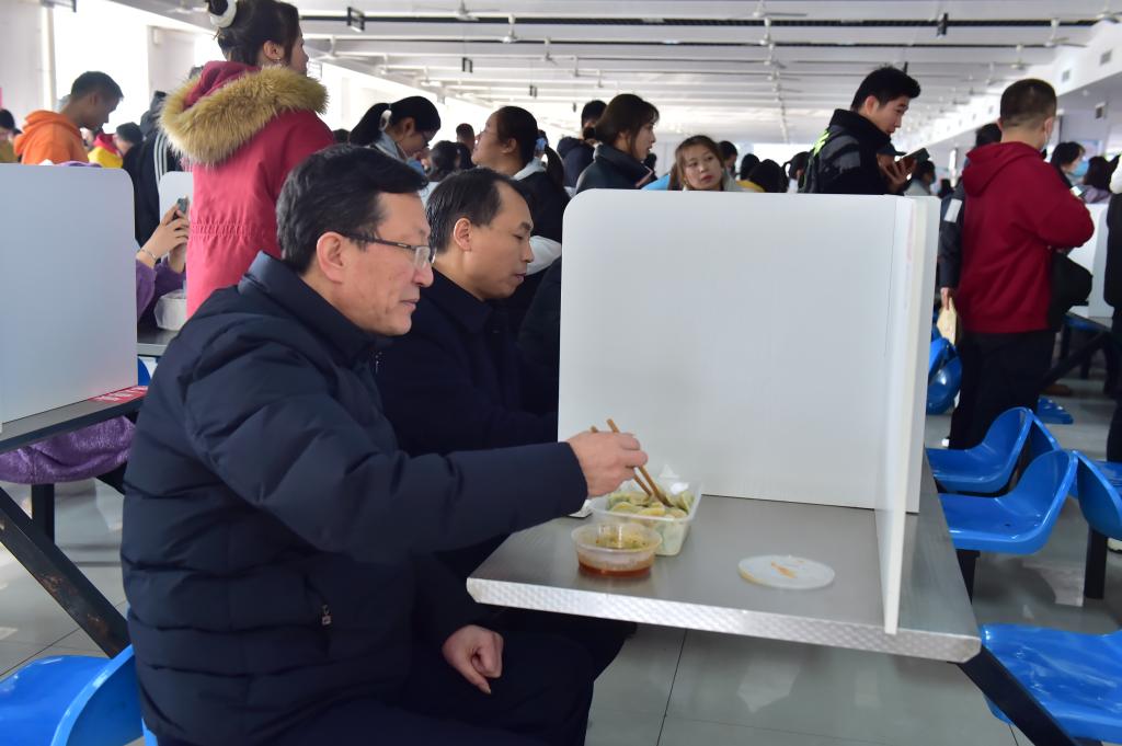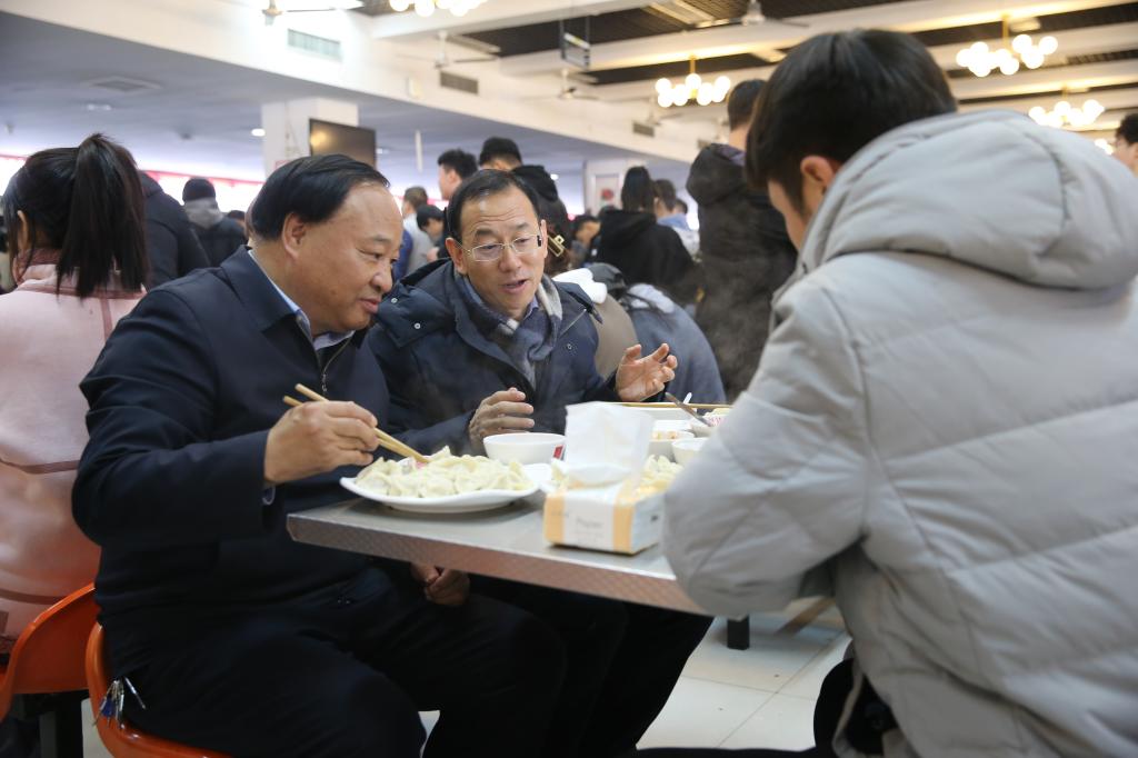 中午12点,我校党委书记陈宁,校长王周锁,西北农林科技大学党委副书记闫祖书,以及我校党委副书记任得元,党委副书记、纪委书记刘粉莲,副校长祝战斌也分别来到三个校区的餐厅,与学生们一起吃饺子、过冬至。