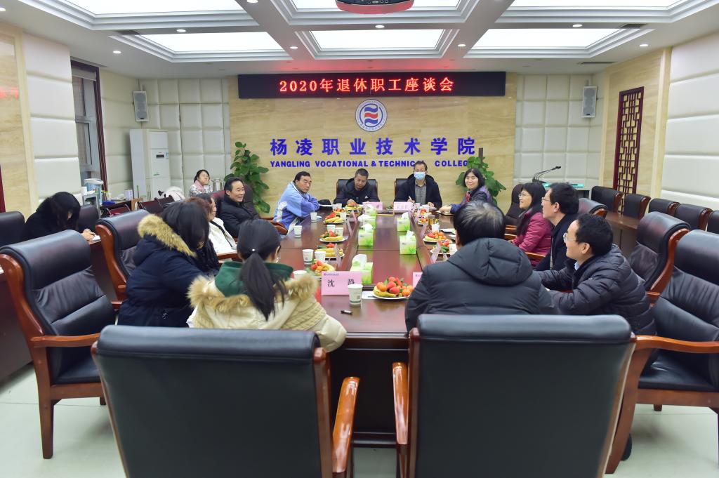 1月20午,学校2020年退休职工座谈会204会议室召开。党委书记陈宁、党委副书记任得元,人事教师处、离退休工作处、后勤保障处、生物工程分院、文理分院、体育部单位部门负责人参加了会议,会议由党委书记任得元主持。
