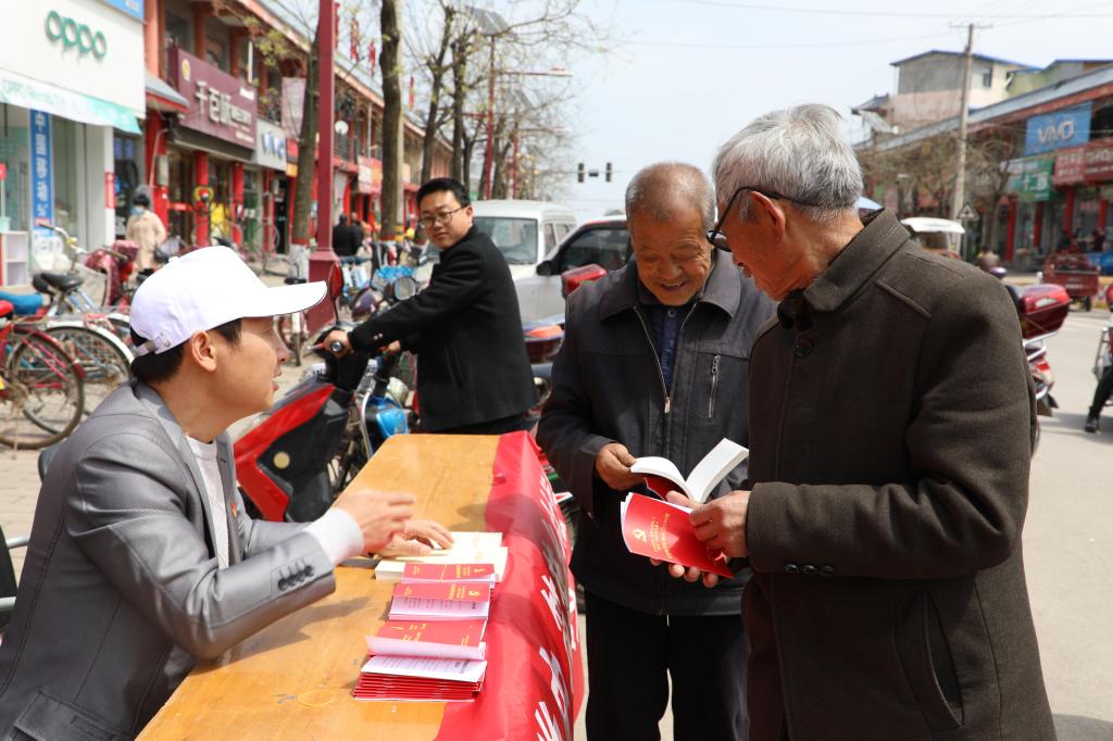 为当地村民发放党史学习资料