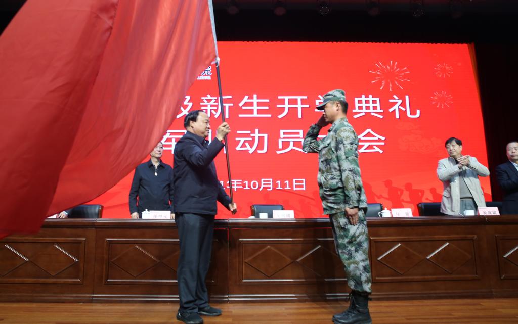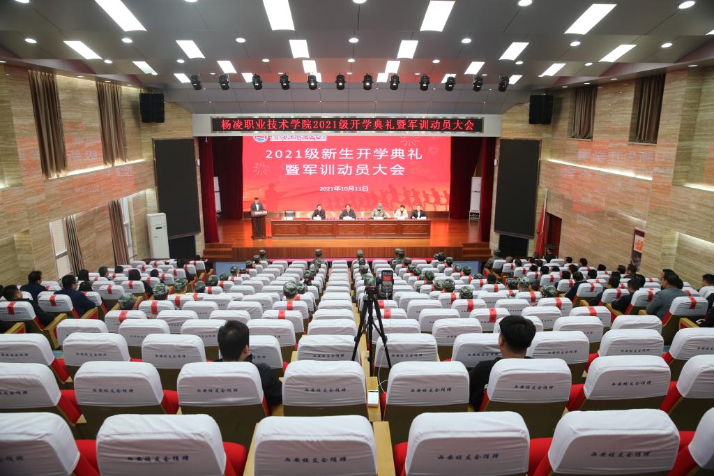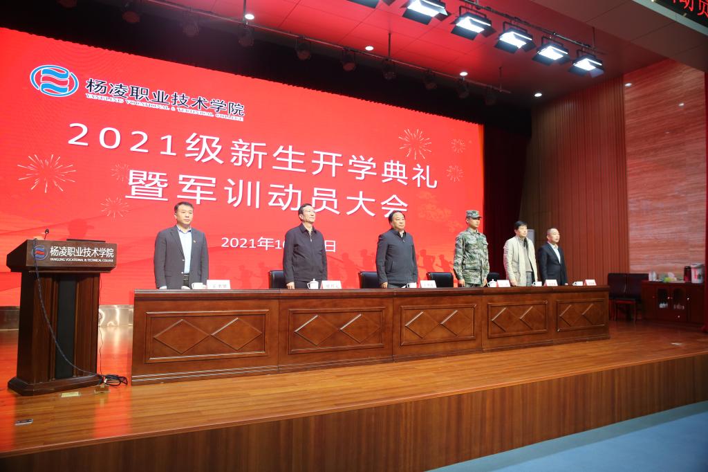 1011日2:30分,伴随着庄严的国歌声,杨凌职业技术学院2021级新生开学典礼暨军训动员大会在南校区思辩堂举行。校长王周锁向军训团授旗作开学讲话,本次军训团团长马防作军训动员讲话,党委副书记任得元党委副书记、纪委书记王勇胜副校长祝战斌胡俊鹏出席大会。大会由党委副书记、纪委书记王勇胜主持。