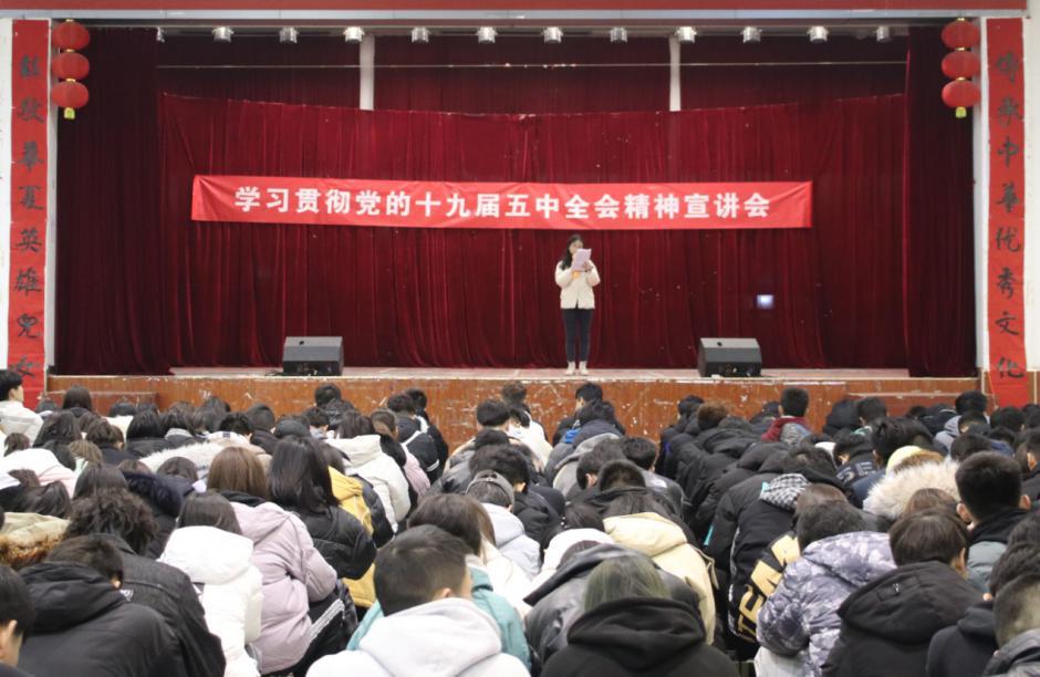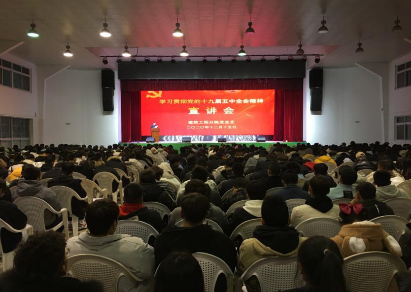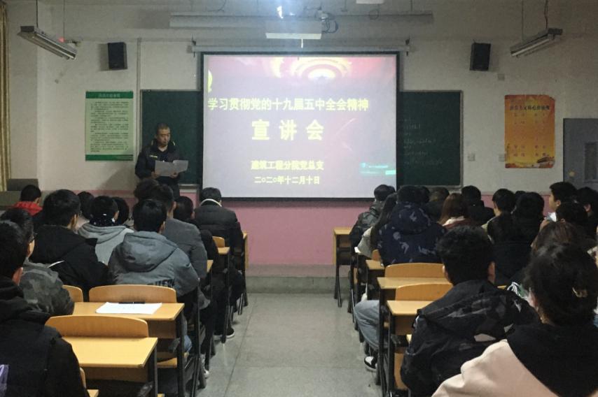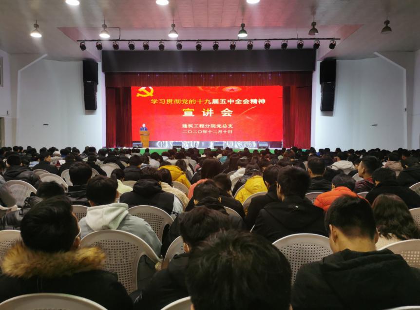 为深入学习宣传贯彻党的十九届五中全会精神,按照校党委统一部署,建筑工程分院党总支成立由党总支书记、团总支书记、团总支副书记(学生)、团总支组织部长(学生)组成的学习宣传贯彻党的十九届五中全会精神大学生宣讲团。12月10日至21日宣讲团成员分别在南北校区开展了5场宣传