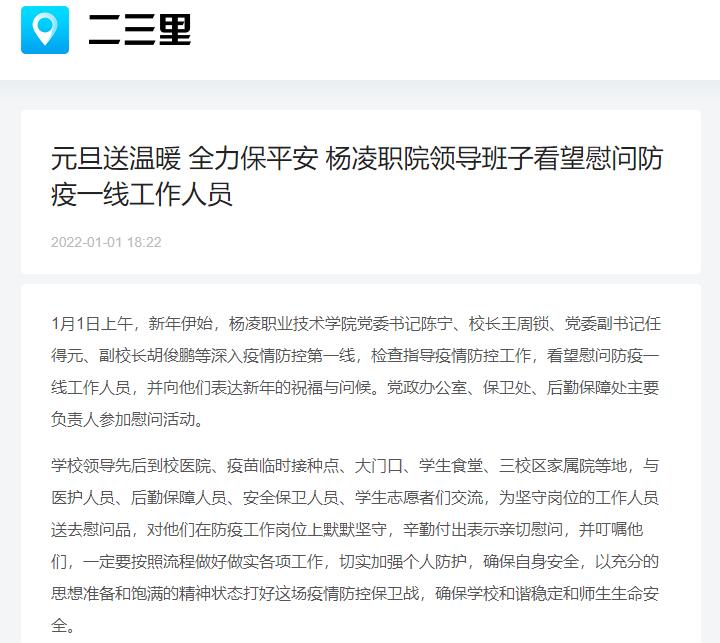 【二三里】元旦送温暖 全力保平安 杨凌职院领导班子看望慰问防疫一线工作人员