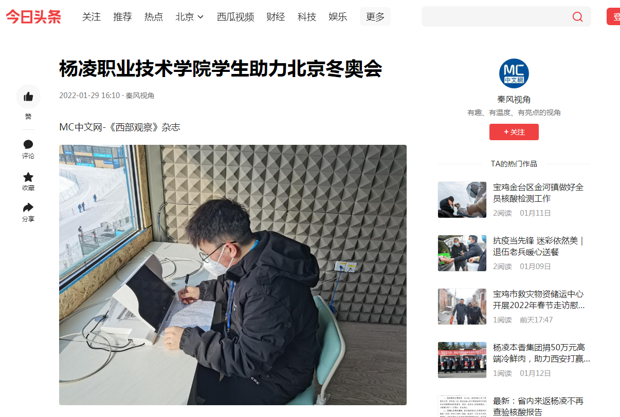 【今日头条】杨凌职业技术学院学生助力北京冬奥会