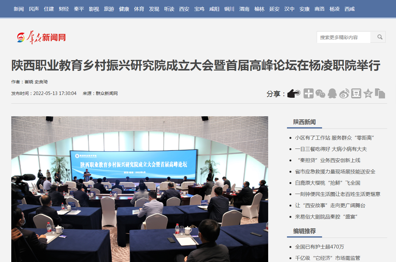 【群众新闻网】陕西职业教育乡村振兴研究院成立大会暨首届高峰论坛在杨凌职院举行