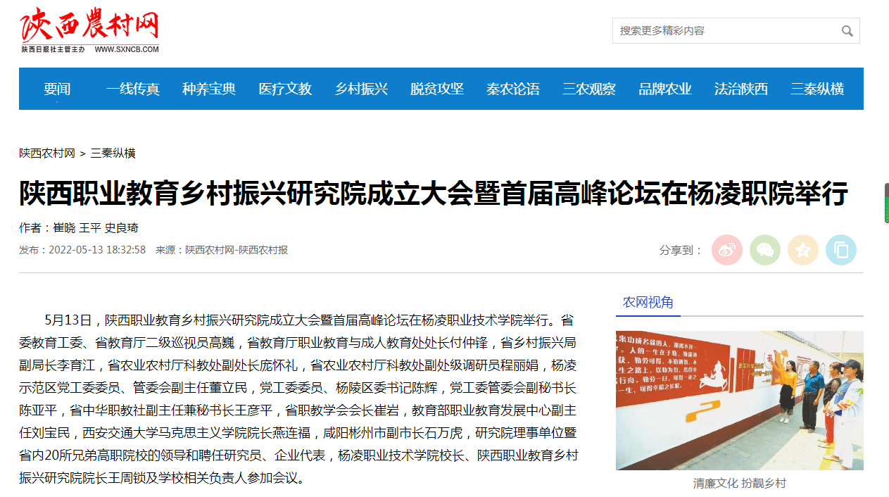 【陕西农村网】陕西职业教育乡村振兴研究院成立大会暨首届高峰论坛在杨凌职院举行