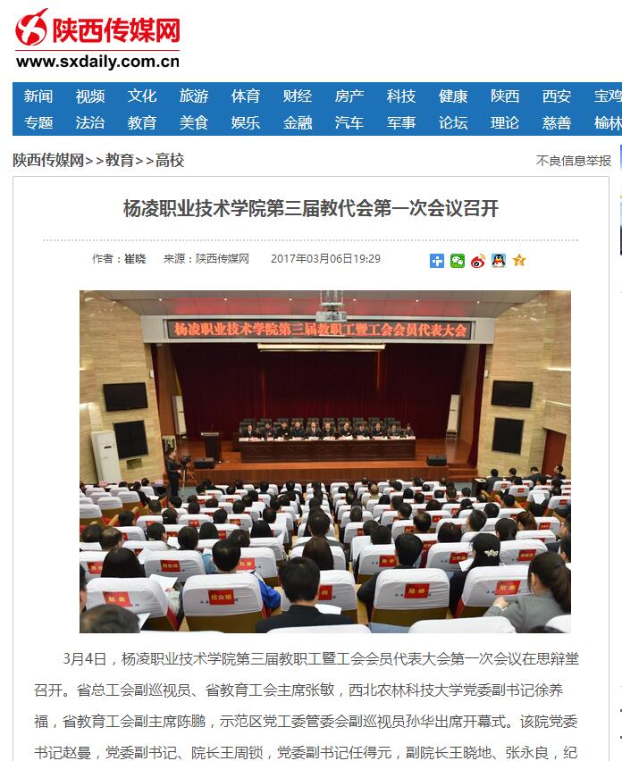 【陕西传媒网】杨凌职业技术学院第三届教代会第一次会议召开