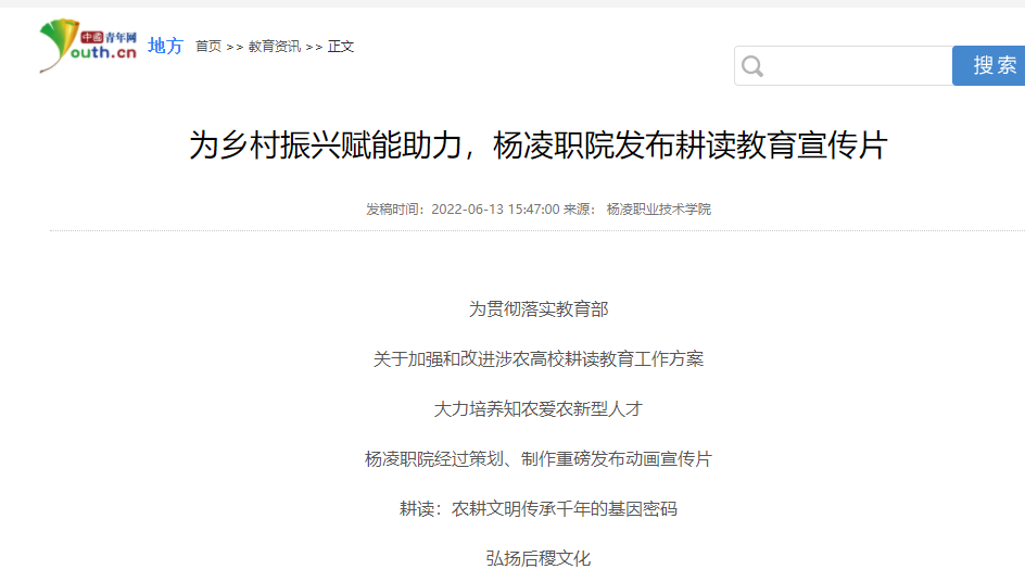 下一条:【西部网】杨凌职院发布动画宣传片《耕读:农耕文明传承千年的基因密码》