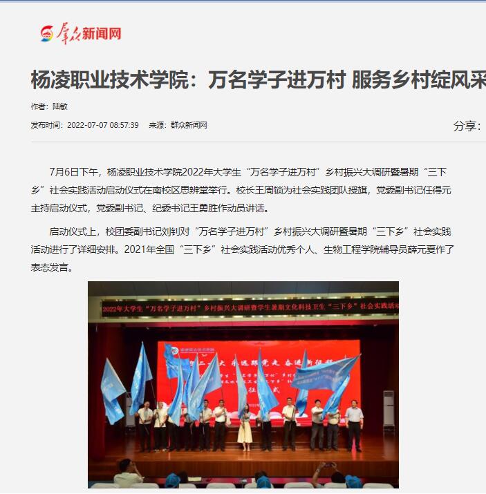 【群众新闻网】杨凌职业技术学院:万名学子进万村 服务乡村绽风采