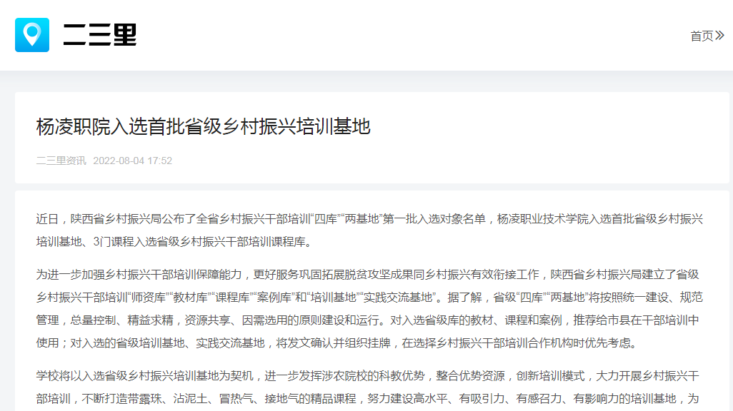 【二三里】杨凌职院入选首批省级乡村振兴培训基地